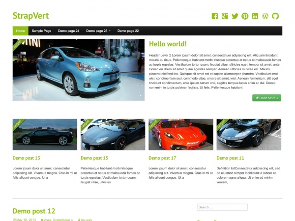 StrapVert – a clean and elegant theme for those who like to showcase their content. Ideal for the designer/artist as well as for magazine and business type websites. Built in Customizer options for site logo, Menu bar control, Header social links, Featured posts control, Hide title on pages, Hide comments form on single attachment (Deter those spammers) page, Right or left sidebar control, footer showcase widgets and more. Now with option to include featured posts in blog feed, option to show social links in sidebar. Take StrapVert for a test drive today – you are bound to fall in love with it!