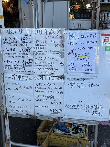 エサも一通りそろっており、仕掛けも販売しています。