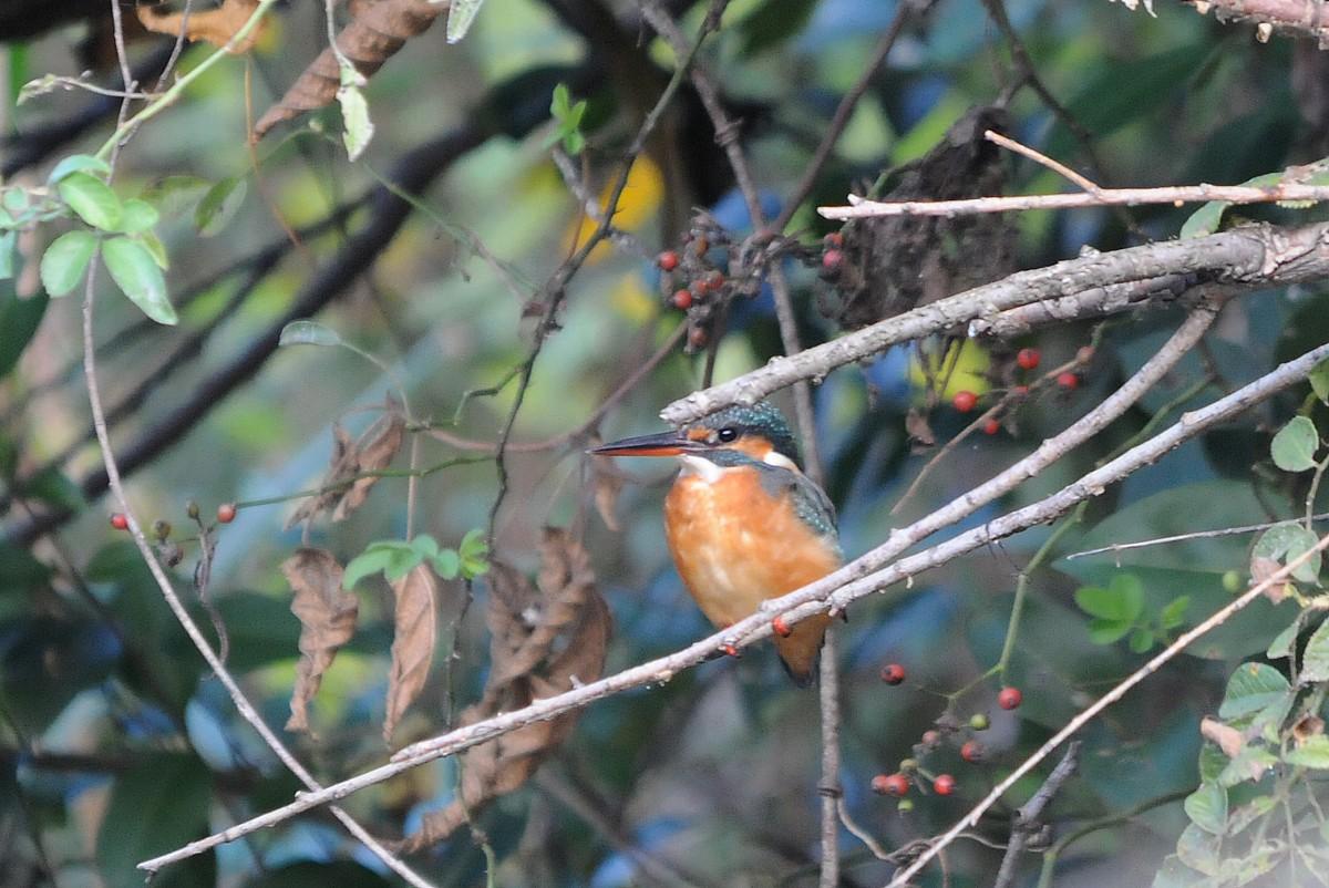 昨日、平荘湖で、オシドリを見たところですが、今日は、日岡山公園の野球場横の池に、雌が、やってきました🧡