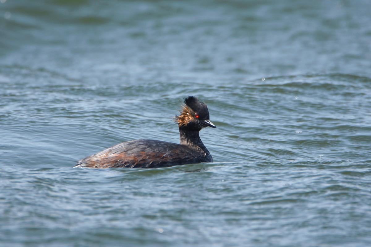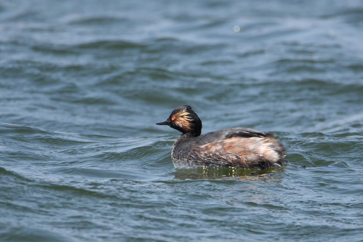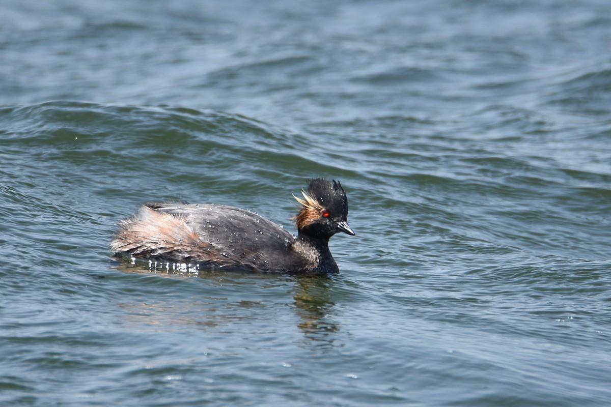 お隣のお隣のお隣のまちの浜に、夏羽のハジロカイツブリが、居ると聞いて、出かけてきました (^_-)-☆