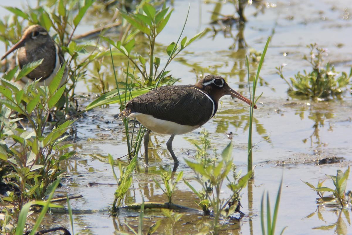 帰宅は、12時過ぎでしたので、昨日のタマシギを覗いてみますと、まだ、2羽は、残っていました。
