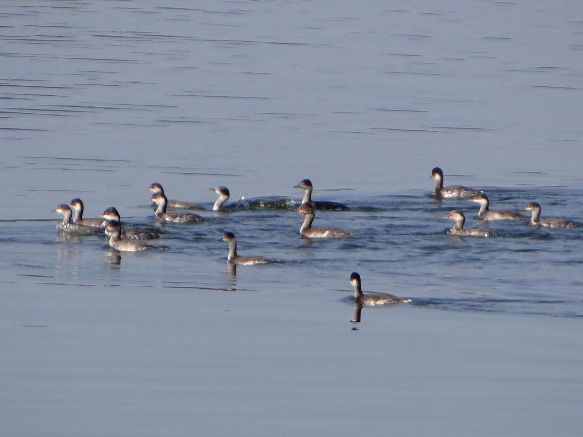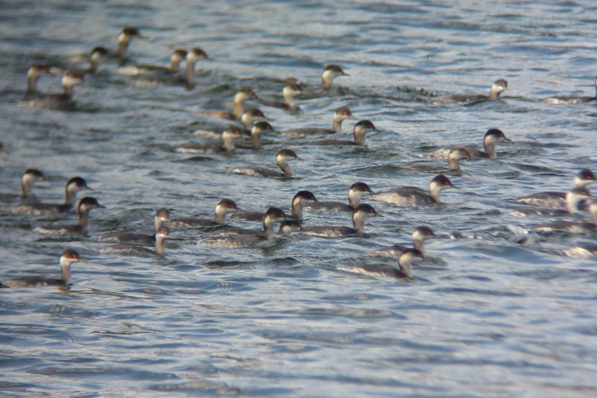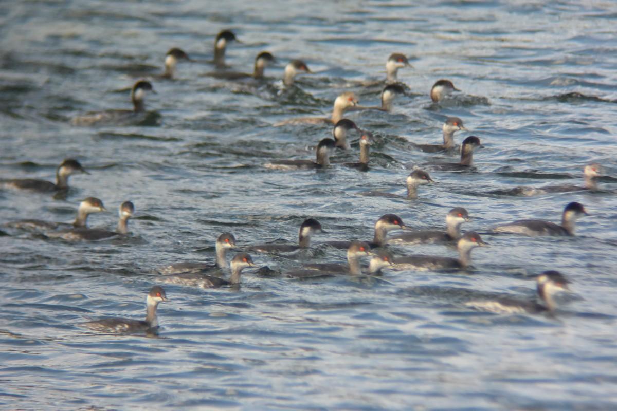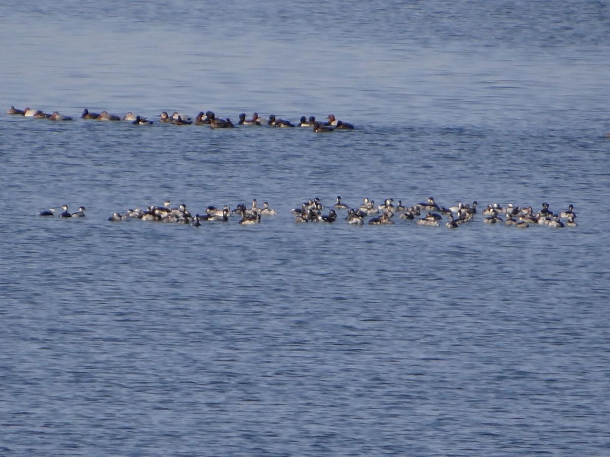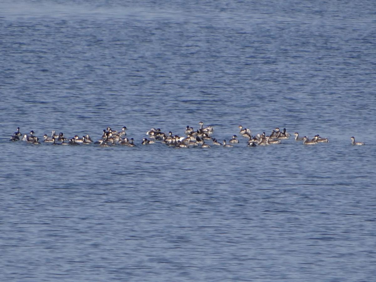 少年自然の家付近を、覗いてみますと、遥か彼方に、浮き沈みする、大きな群れが、見えました。