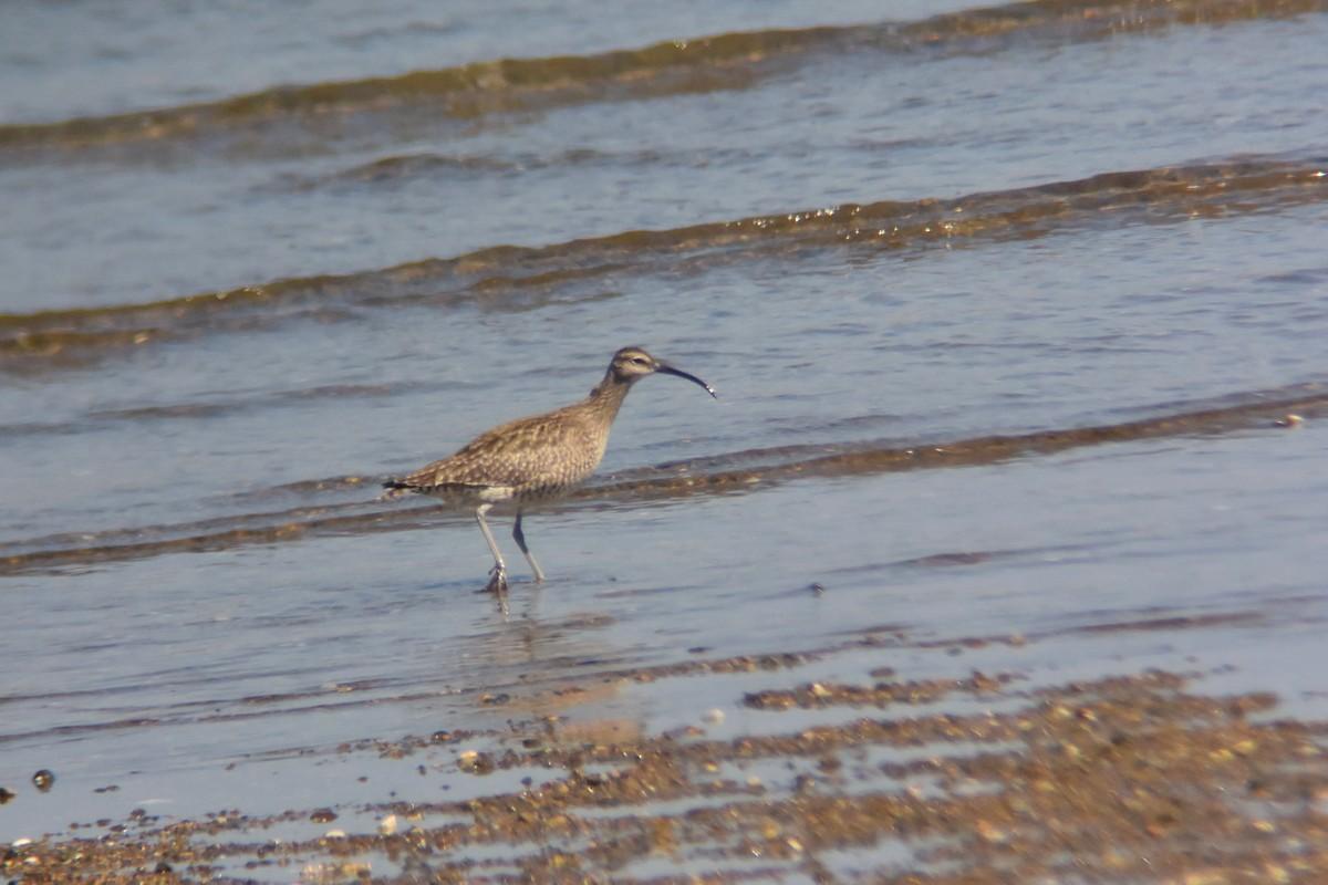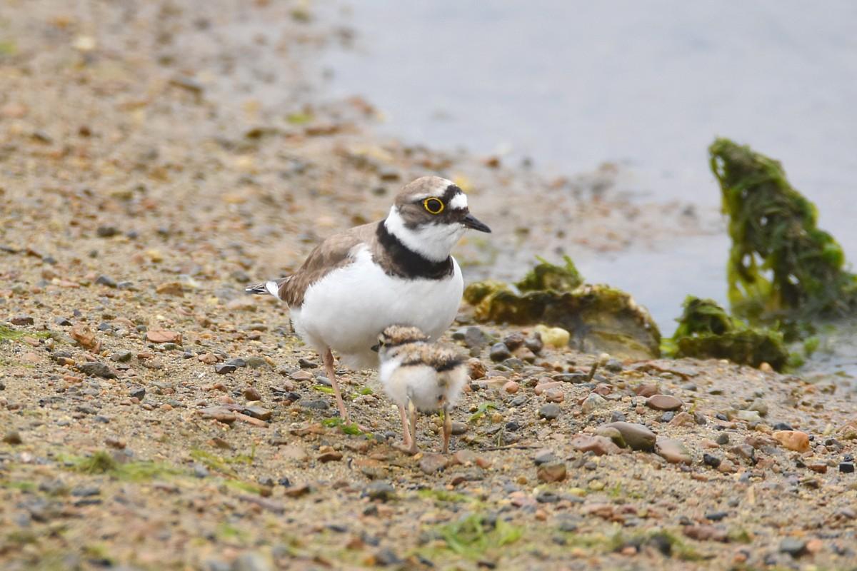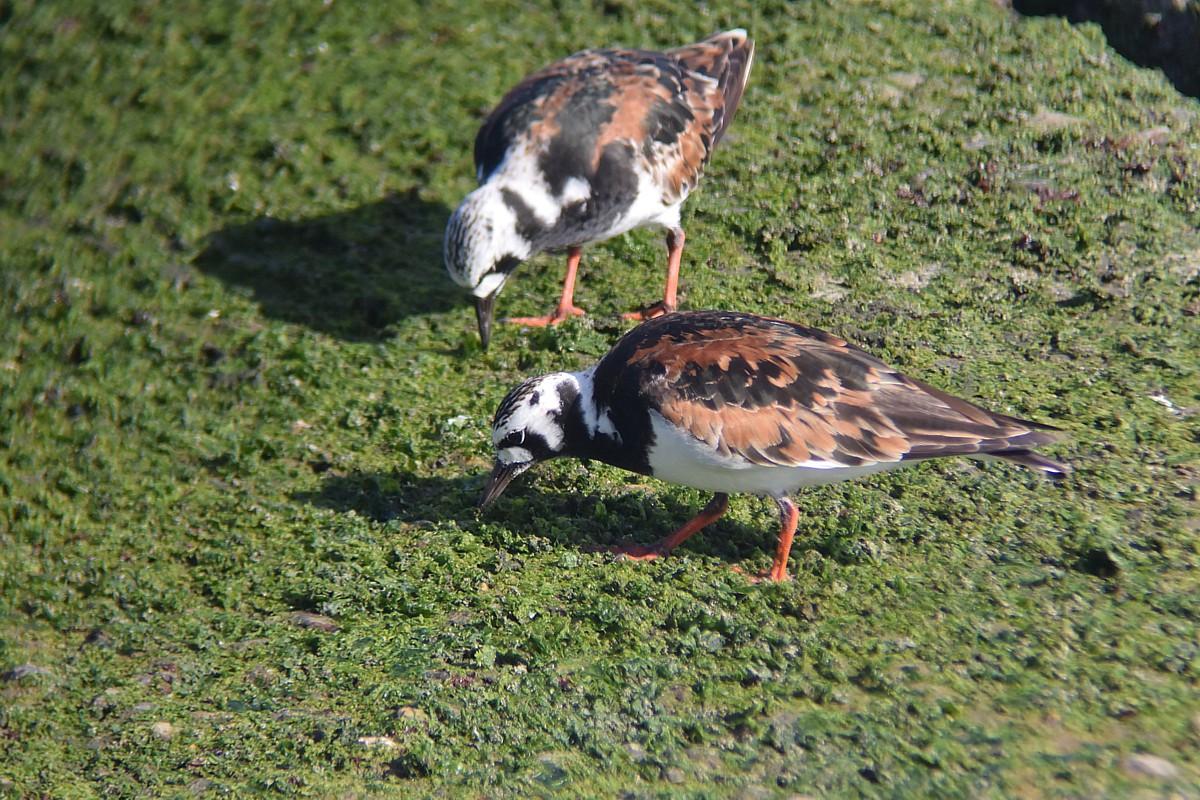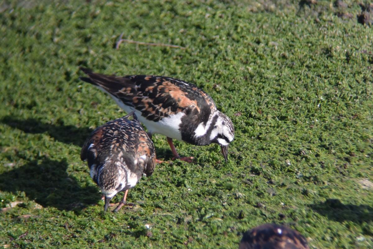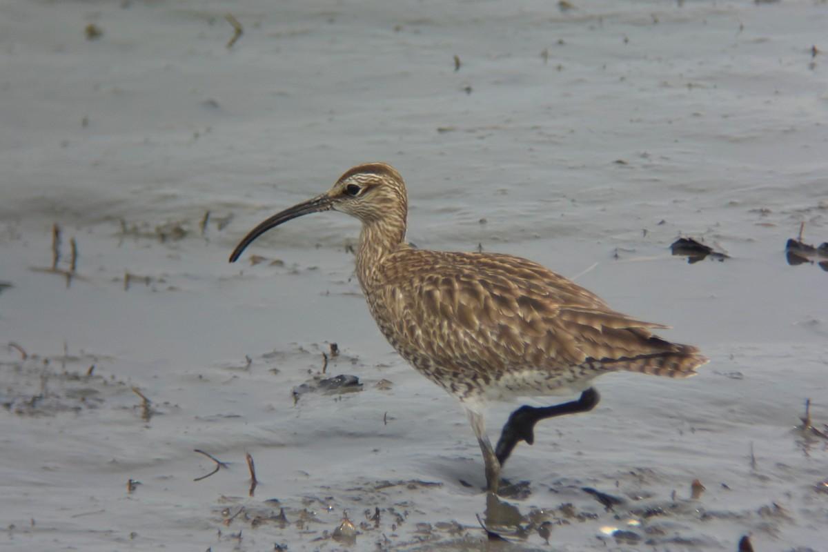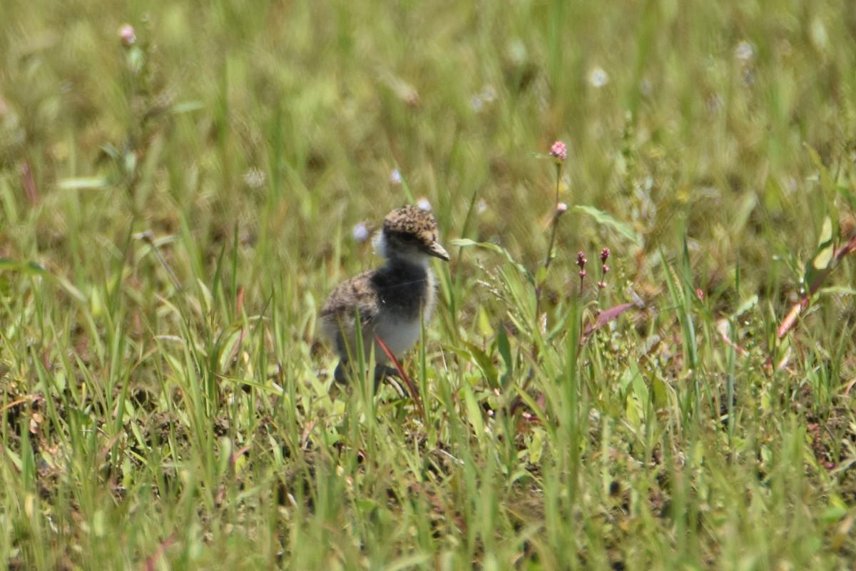 田植えの準備が整った田圃の横に、車が、2台止まっていますので、近付いて行きますと、2羽のセイタカシギが、お食事中です。