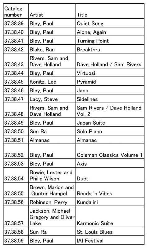 新年早々、街を歩いたときに連れて帰ったレコード。ブレイのIAI (Improvising Artists Inc.)って懐かしいなあ、と思った。昔、レコードを集めていた頃、よく見かけたのだけど、結局、1枚も買わなかったレーベル。ジャコ・パストリアスの事実上のデビューアルバムも、このレーベルから出ている。CDで入手したけど、ちっとも面白くなかったけど。wikiによると、ブレイのアルバムを中心に、以下のアルバムが出ている。サン・ラのソロって、聴いてみたいな。