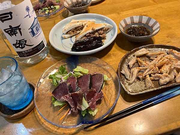 っと平和ボケした日本より世界平和を祈りながら晩飯だ。アテは鶏軟骨にカツオにもずく!おいおい、最高トリオじゃない?バランス最高だ。
