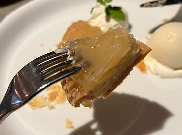おいおい、これもめっちゃ美味い!洋梨の爽やかさがいいのだ。アイスも単なるバニラじゃなく、柑橘系で更に美味い。おいおい、言っちゃなんだかメインより脇役の方が主張してくるって面白いものだ。