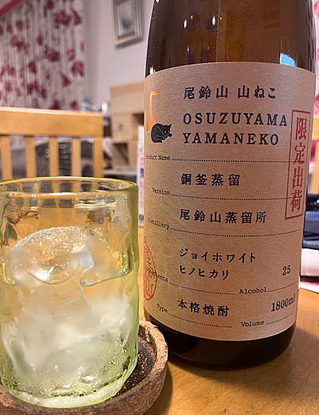 しばし楽しませてもらった「尾鈴山 山ねこ銅釜蒸留」も今日で完飲。