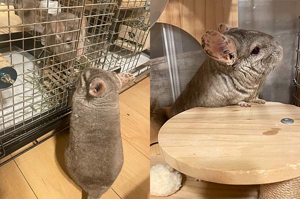 早速、先住チンチラのトトちゃんの部屋んぽ!チンチラ界ではケージから出して部屋の中で遊ばせてやることを”部屋んぽ”というらしいのだ。