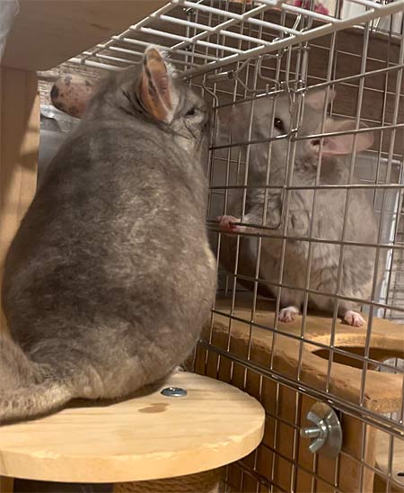 そんなののちゃんだが、今日は一大イベント?先住チンチラのととちゃんとご対面の儀式だもんね。もちろん、ブリーダーさん先で簡単な相性チェックは済ませたけど・・・ドキドキワクワクだ。チンチラカップルは相性悪いと大変なことになると聞くからね。