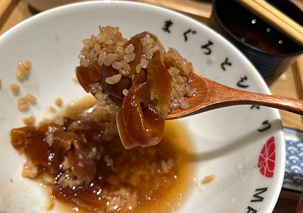 確かにこの赤酢による黒飯は過去数度味わったことあるが、どこもホント美味かったことハッキリ覚えているし、ここもしっかり記憶されるはずだ。もちろん、大トロもめちゃくちゃ美味いのだが、この赤酢飯も負けずに極上なのだ。