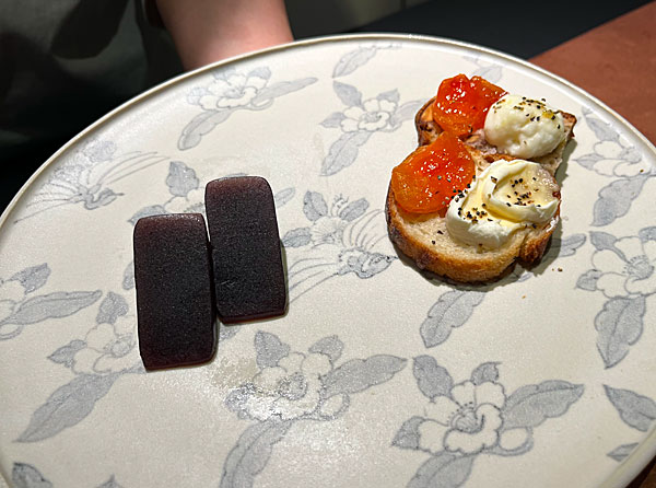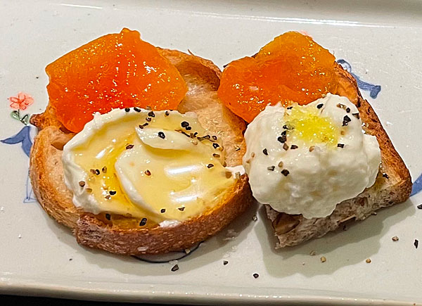 かみさんのチョイスは青心烏龍と限定のあんぽ柿のクロスティーニ!