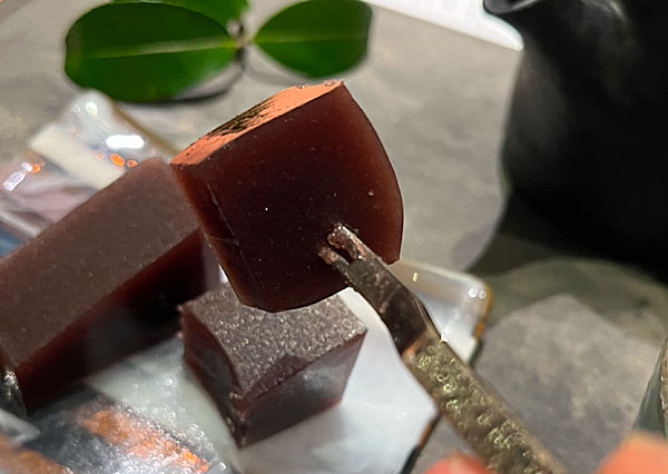 最後にお菓子を頂こう。ここ金沢で何度もご対面した名店「たろう」の干菓子だ。このっカリッとした後のモチモチ感がいいんだよ。甘いけどね。