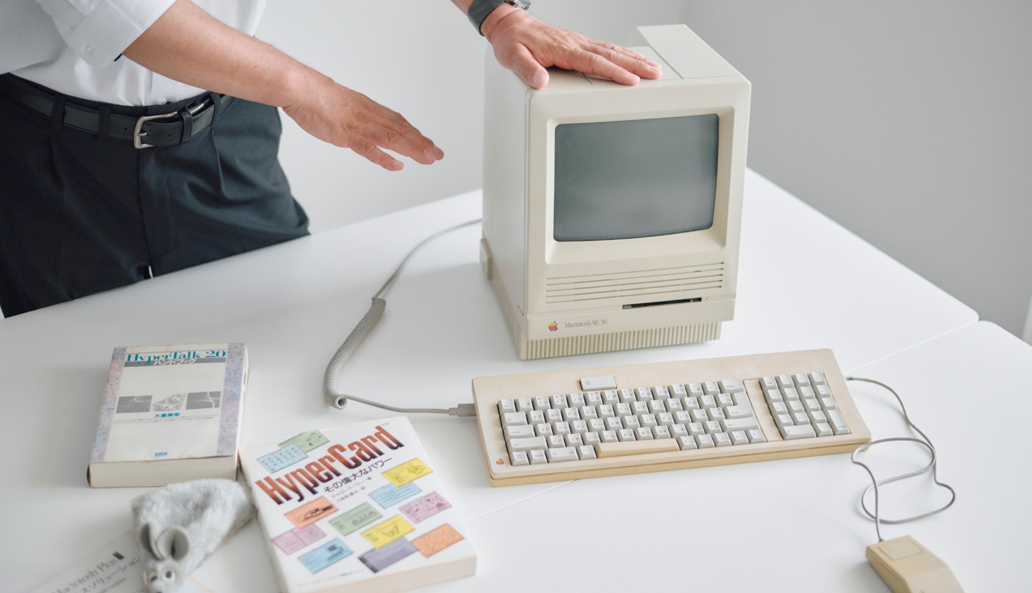 「趣味が高じて身につけたプログラミング」と書いたが、信太氏はもともとパソコンに興味があったという。例えば1980年代、信太氏は大学生だったが、当時はMS-DOSなどはあったものの、Apple社の『Macintosh』が日本に上陸し、そのGUI(グラフィカルユーザーインターフェース:画面上のアイコンやボタンなどを操作するインターフェース)を見て衝撃を受けた。これが、信太氏がコンピュータに興味を持つきっかけだった。当時のMacintoshは学生の手の届かない価格だったが、その後ようやく手の届く価格になり、実際に購入した。MacintoshにはHyperCardというアプリが入っており、趣味で遊んでいた。これが言語学習につながったと話す。