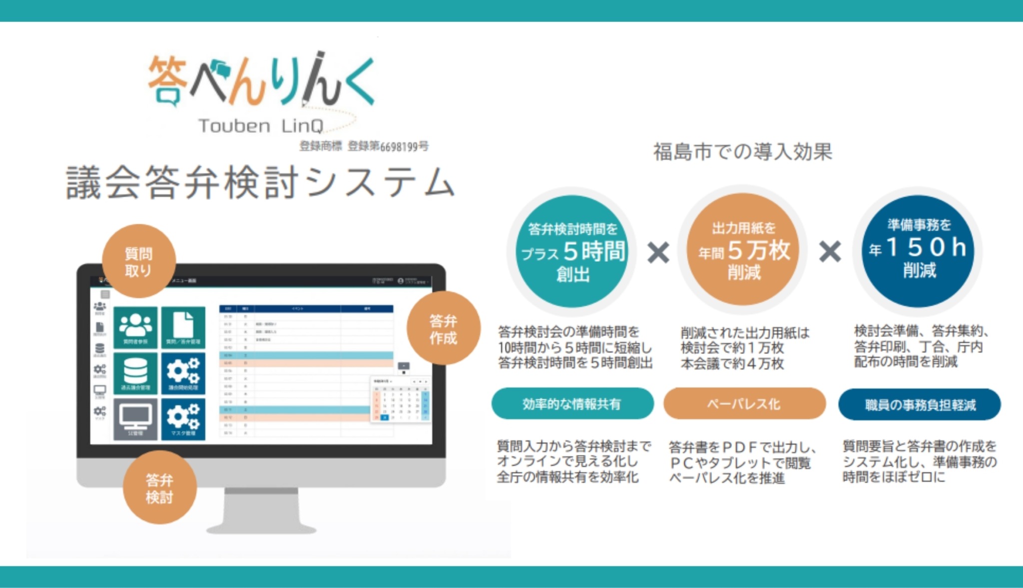 『答べんりんく』は自治体の議会における質問取りから答弁検討までを、オンラインで一元管理するシステムだ。2023年4月のリリース当時、約200自治体から問い合わせがあった(2025年現在、25団体導入済み、当面5団体程度導入見込み)という、自治体からの注目度の高いシステムである。