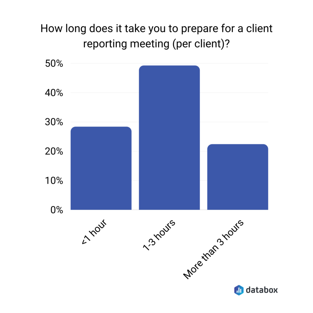 And how much time should you take to prepare for a client reporting meeting? According to our survey, business owners need between 1 to 3 hours per client to get ready.