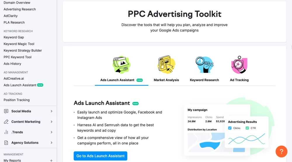 SEMrush is an all-in-one platform that takes the guesswork out of running successful PPC campaigns.