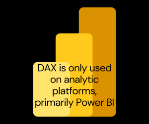 Admittedly, I have the least amount of hands-on experience with DAX. However, I disliked it early on. Unlike SQL and MDX, DAX is not built around math principles and is not a query language. It is built with expressions. Instead of SELECT, it starts with an equal sign (=). This is more intuitive for Excel users. Early on, it was very frustrating for me.