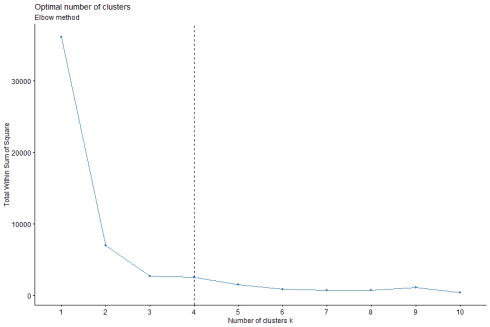 The optimal number of clusters for our dataset is indicated as equal to 4 by the above plot.