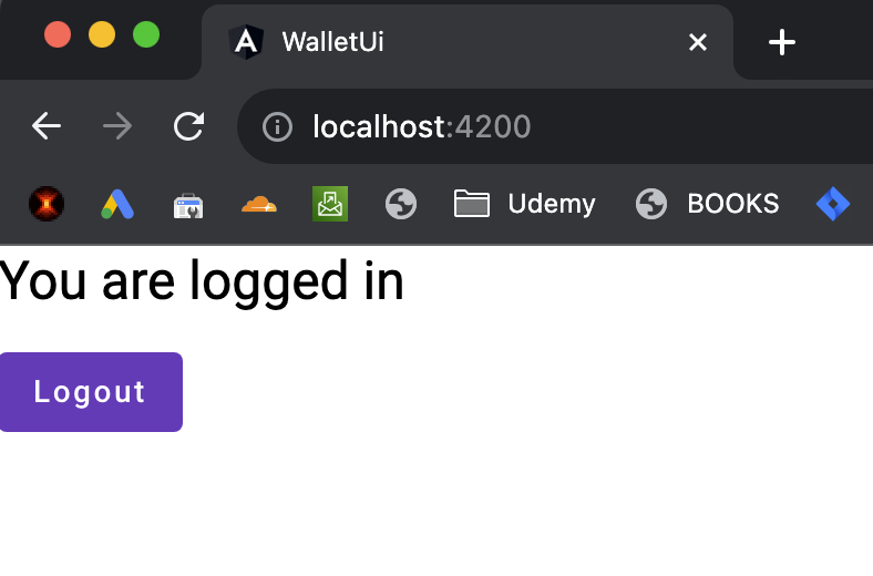 If you enter the details correctly, you are back to the Angular application: