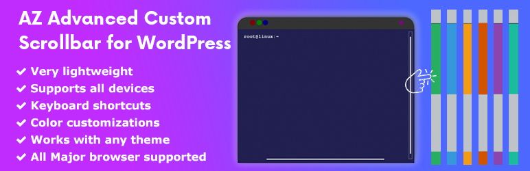 «AZ Advanced Custom Scrollbar» – is a modern custom scrollbar, which allows you to replace the existing scrollbar of your website by an awesome custom scrollbar. The scrollbar is extremely smooth and consistent in modern browsers and mobile devices, with low resource usage.