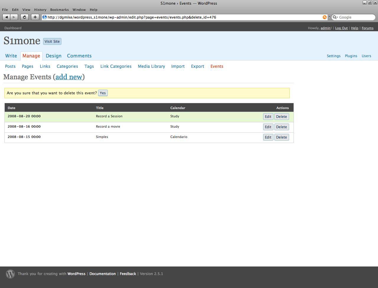 Now you can create events for your wordpress. Whit this plugin you can create and manipulate events like