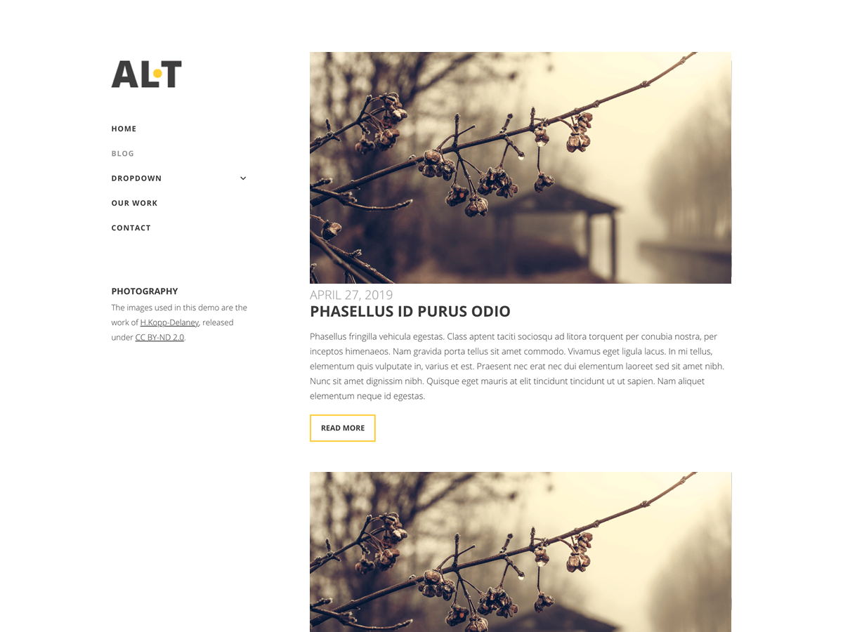 Alternate Lite is a clean, minimal and simple blog theme. In the front page you can display your blog or a static page. Add links to your Social media accounts easily with the integrated Social Media menu. Alternate Lite comes loaded with 28 social media icons to have your visitors connect to you. Easily upload your logo image and favicon, styling for Contact Form 7 plugin are among the features. For even more features check the Pro Version of this theme https://www.vivathemes.com/wordpress-theme/alternate/