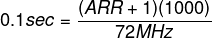As you can see, the output time interval is determined by the Prescaler value, the clock frequency, and the timer auto-reload register’s value. Given that the blue pill board can run @ up to 72MHz, so let’s set the frequency to 72Mz. Now, we can choose a value for the Prescaler then put in the desired TOUT and solve for the auto-reload register’s value.