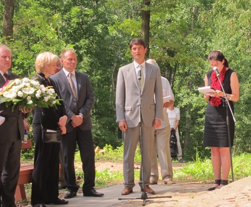 The Other Račinskas: A rather different spiel for the foreign Jews and Holocaust specialists at the memorial ceremony for the Jews of Plungyán (Plungė) on 17 July 2011. The 1800 Jews barbarically butchered at this site were murdered exclusively by the Lithuanian ‘partisan patriots’ exonerated by the same speaker in the country’s parliament several weeks earlier (see precise text above).