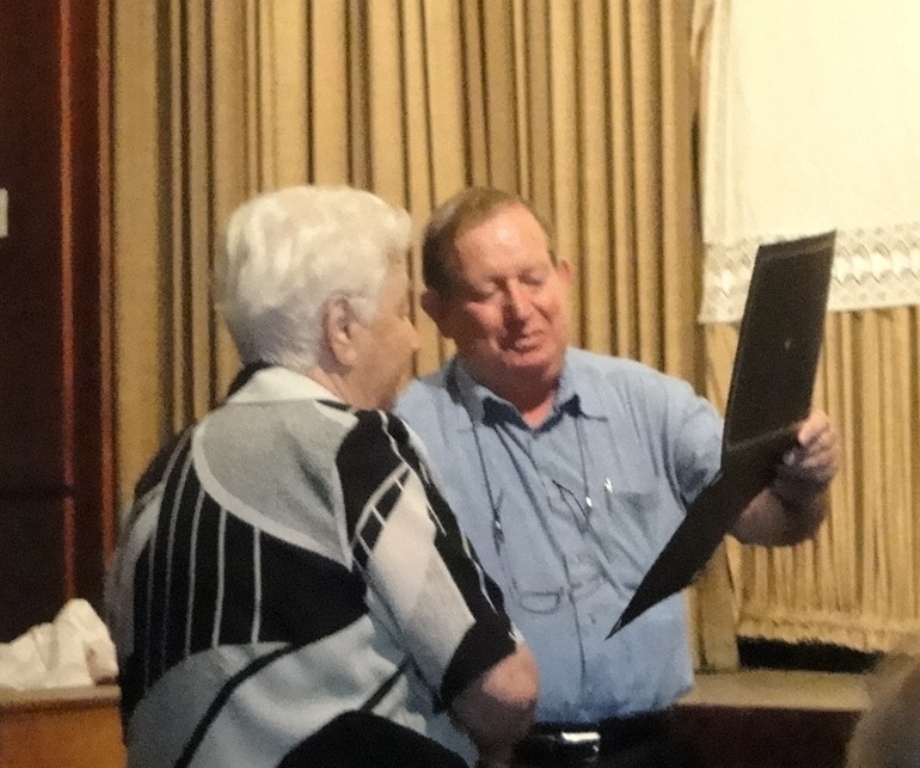 7 July 2011. Israeli Ambassador to Latvia and Lithuania HE Nati Tamir presented to Fania Brantsovsky a letter and gift from Avner Shalev, director of Yad Vashem. Report under 7 July in the Bulletin of the Jewish Community of Lithuania, with thanks to DCM Liat Wexelman.