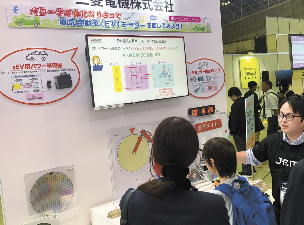 CEATECの「半導体フォーラム」のブースには、パワー半導体の説明を聞く子どもの姿もあった
