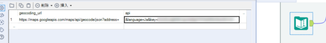 テキスト入力ツールにAPIを入力したURLをhttps://maps.googleapis.com/maps/api/geocode/json?address=と&language=Ja&key=<APIキー>の2つに分けて入力します。