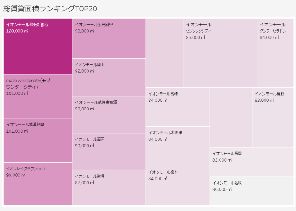 - 総賃貸面積の大きさランキング上位20店舗