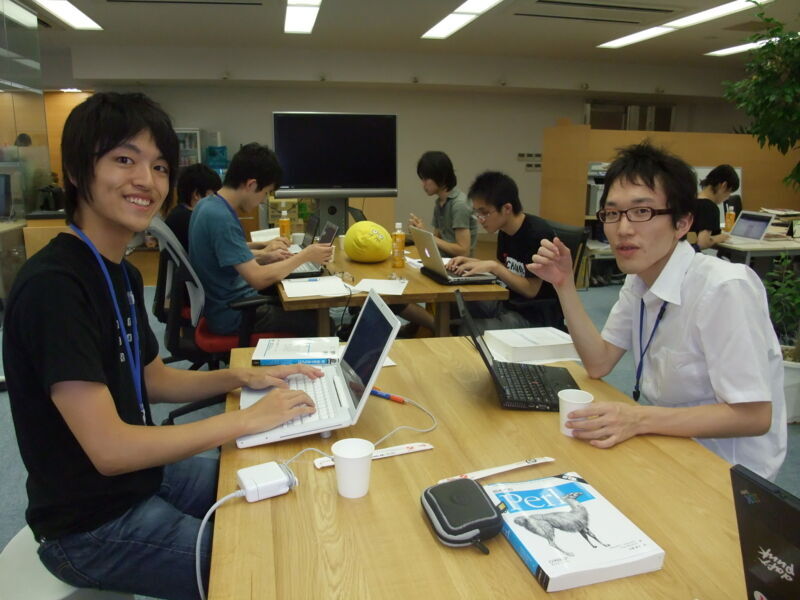 id:mechairoi(右) と 「初めてのPerl」(2009年)