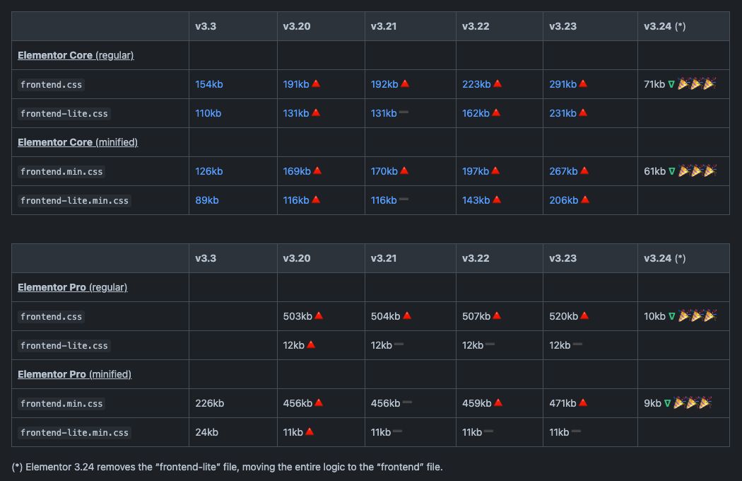 Version 3.24 focused on splitting styles from the general frontend file, which is loaded on every page. This way, Elementor can separate the styles that are loaded conditionally when they are used on the page.