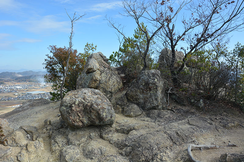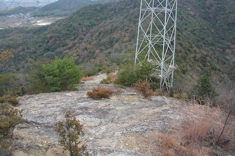 ▲高御位山の山頂から東へ石段を下った