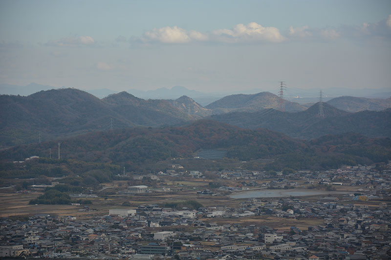 ▲東から見た高御位山と小高御位山(左端の送電塔は姫路火力東線37番)