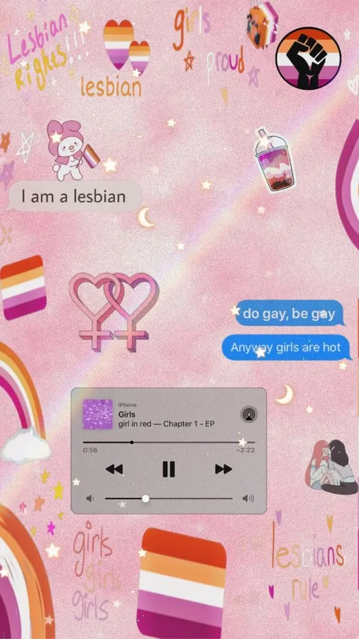 En Dejlig Kunst Af Lesbiske Æstetiske Ikoner Illustreret Med Farverige Lesbiske Stolthed Nuancer På En Lyserød Æstetisk Baggrund.