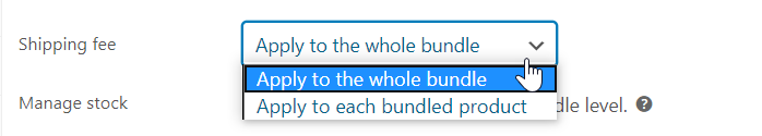 Then go back to the Bundled products tab and now you can choose an option for configuring the Shipping fee. The Shipping fee will be calculated based on the chosen shipping class and applied to each product individually or for the whole bundle due to this choice.