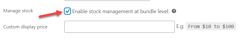 To set up a stock quantity for the whole bundle, put a check to turn on “Enable stock management at bundle level” >> Update.