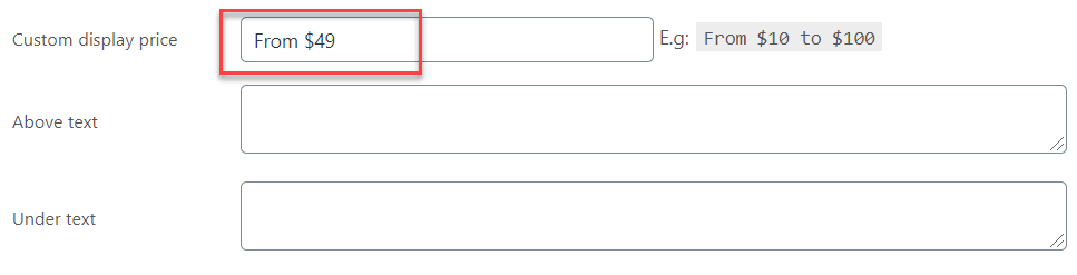 The Custom display price will be visible only if the “Change price” option is disabled. When the Change price is enabled, the custom display price will be displayed on the archive/shop pages only.