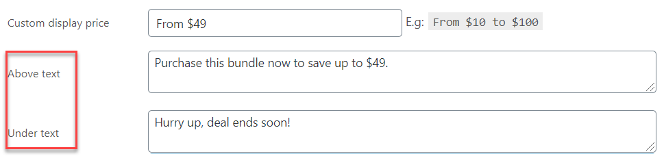 Customize the Above/ Under text for the current bundle in bundle page to encourage buyers.