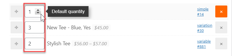 Fill in the default quantity box for each item. By default, when a new product is added to the bundle, the default quantity is 1.