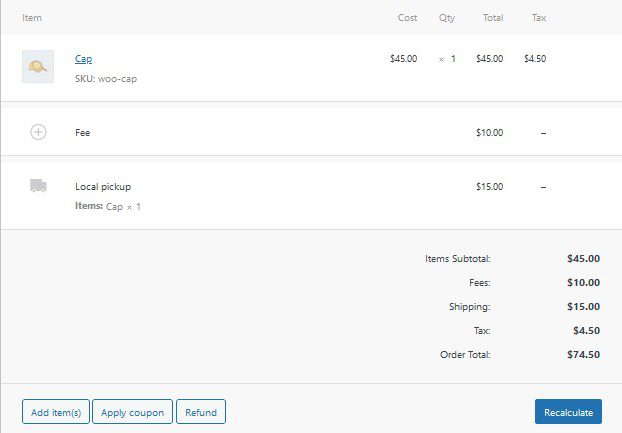 Let’s review the fee settings of the Phone Orders plugin.