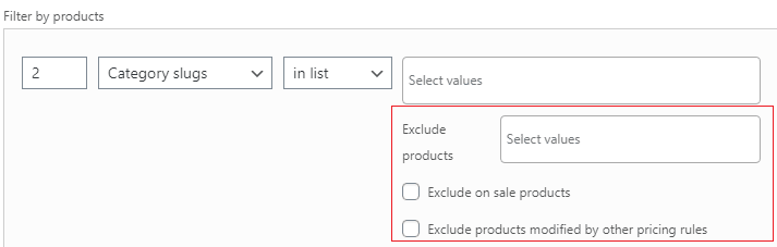 - Allow to exclude products in filters. Check this setting for displaying the Exclude product block inside the product filter section.