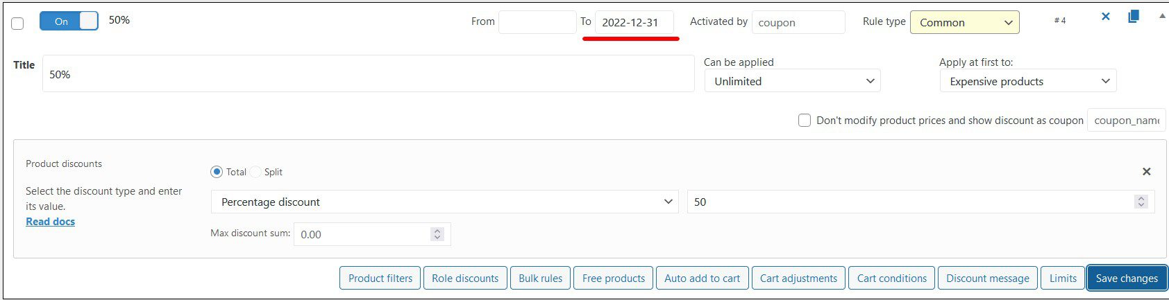 - Migrate rules. Use this migrate tool to convert your common rules to the product only and vice versa. If you have more than 30 rules you’ll get a notification about to enable the “Product only rule” type.