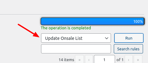 3) Go to the Rules tab. Choose “Update Onsale list” value of the drop-down and click the “Run” button