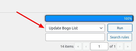 3) Go to the Rules tab. Choose “Update BOGO list” value of the drop-down and click the “Run” button.
