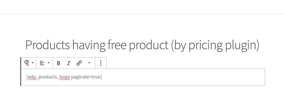 - Support shortcode [adp_products_bogo]. Use the shortcode [adp_products_bogo] for showing products affected by the discount template “Buy one get one” (BOGO).