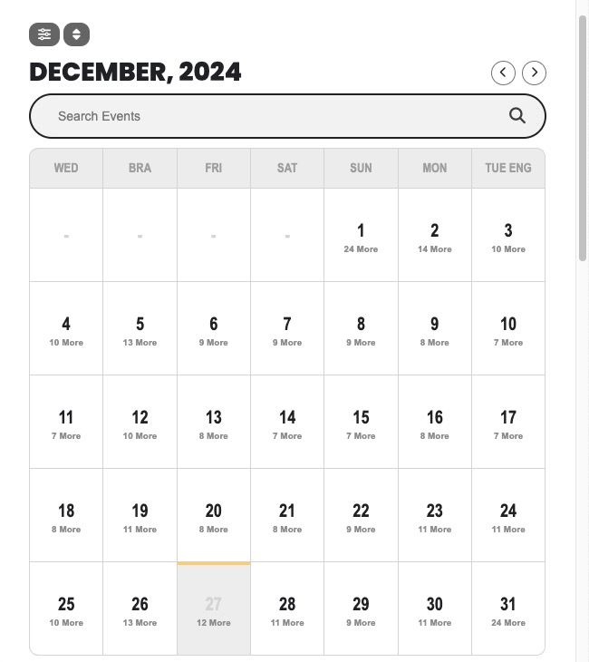 - event_order – You can use this option to define the order of events in each month. The default value is “ASC” and you can also set this to “DESC”.