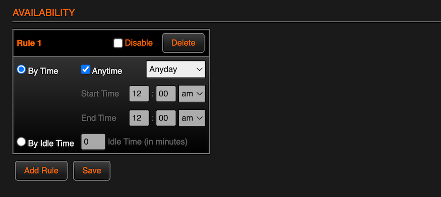 | Availability | A list of rules controlling when the client will accept jobs. See Client Availability Rules. |